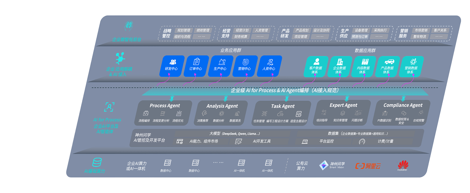 z6尊龙问学智车解决方案是一套基于AI技术的汽车行业智能化系统,,,覆盖从底层算力到顶层AI应用的全栈方案。。。。方案由算力层、、模型层和应用层组成:算力层,,,方案支持多种一体机配置,,,,具备云端灵活部署、、、多云适配以及动态优化计算资源的能力;模型层,,,z6尊龙问学平台版提供了企业级AI应用一站式构建与管理平台,,支持基于后训练强化技术的汽车企业专属模型的训练、、、、评测和运营;应用层,,,,z6尊龙问学DeepSeek版提供包括超级员工、、智能招采、、、、智能营销、、智能客服、、、AI for BI等一系列解决方案,,,,可助力汽车行业实现数字化转型,,,让管理更智能、、、响应更敏捷。。
