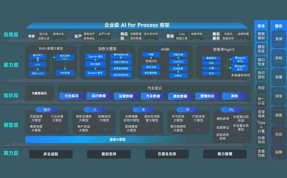 端到端的一站式AI工作空间深度融合了从企业战略规划到日常经营的全流程业务板块,,,,定向解决车企内部领域多、、、部门多、、、链条长、、场景碎片化等难题,,,支持车企快速构建以AI为核心的生产力写作体系,,实现任务执行与AI能力的无缝集成与交互